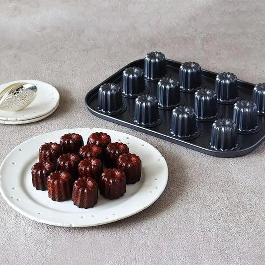 Pour réaliser des cannelés, privilégiez un moule de taille standard pour cannelés, généralement de format individuel et en cuivre. Ces moules offrent la forme traditionnelle et permettent une cuisson optimale pour des cannelés croustillants à l'extérieur et moelleux à l'intérieur. Assurez-vous également que le moule soit bien beurré et chaud avant de verser la pâte à cannelés.