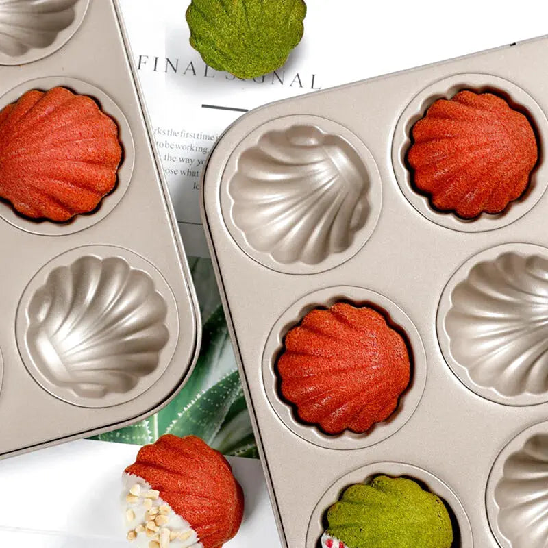 Un moule à madeleines en forme de coquillage rond